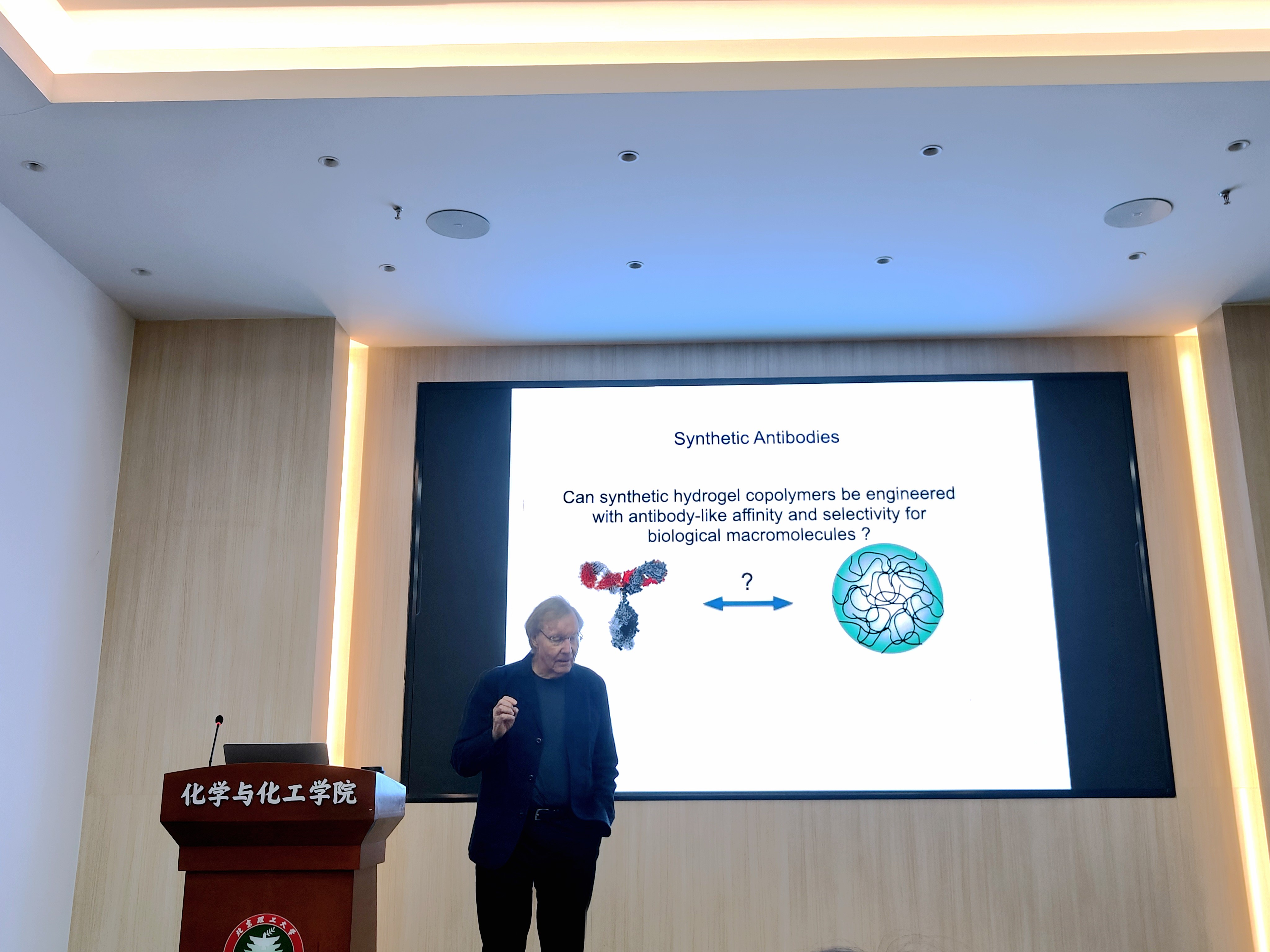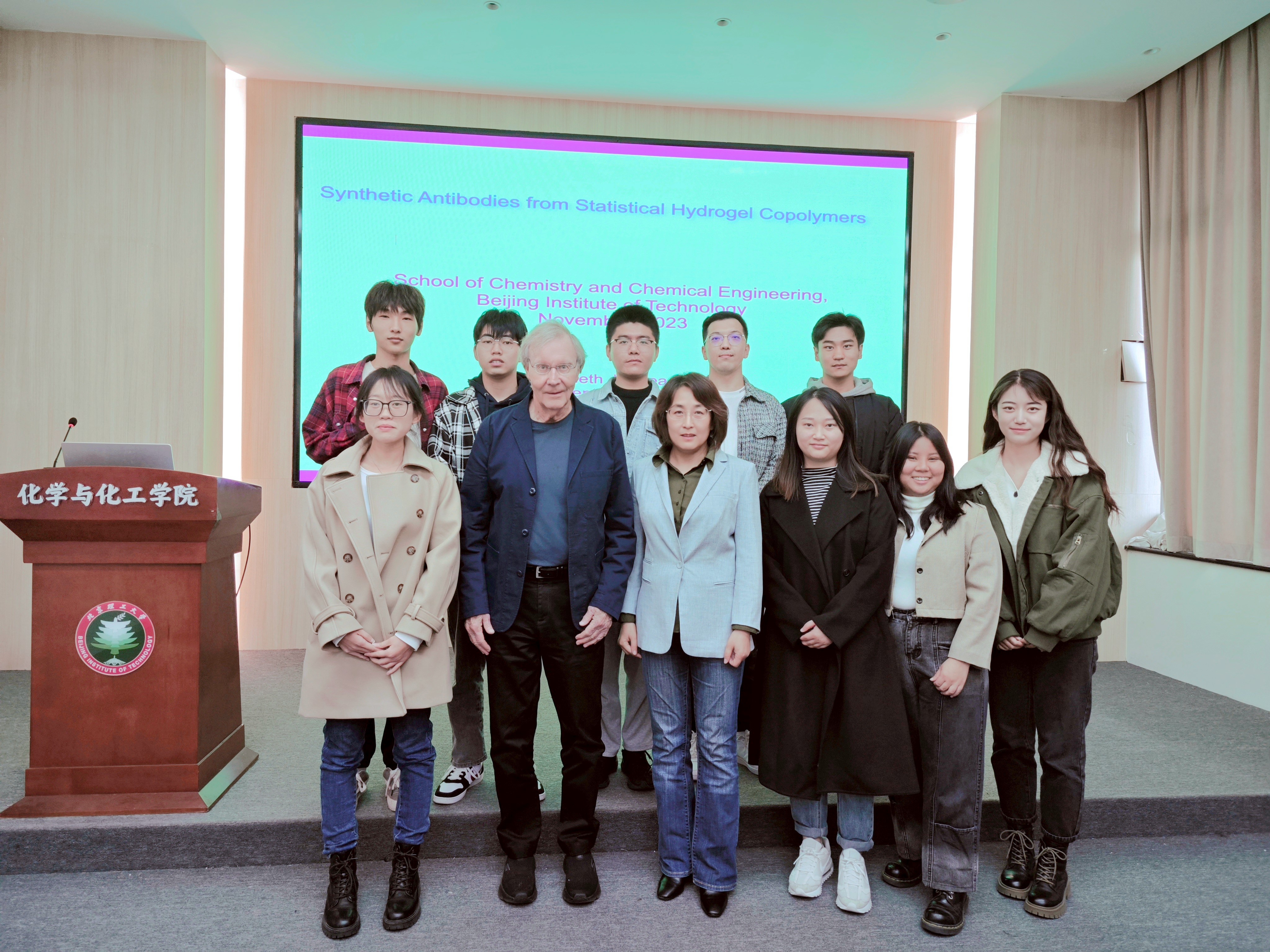 應(yīng)北京理工大學(xué)化學(xué)與化工學(xué)院邀請,美國加州大學(xué)爾灣分校杰出教授Kenneth J. Shea于2023年11月4日上午做客北理工“百家大講堂”,為我院師生帶來題為“Synthetic Antibodies from Low Information Content Statistical Hydrogel Copolymers”的精彩報(bào)告。本次報(bào)告在生態(tài)樓118會議室進(jìn)行,由薛敏老師主持。