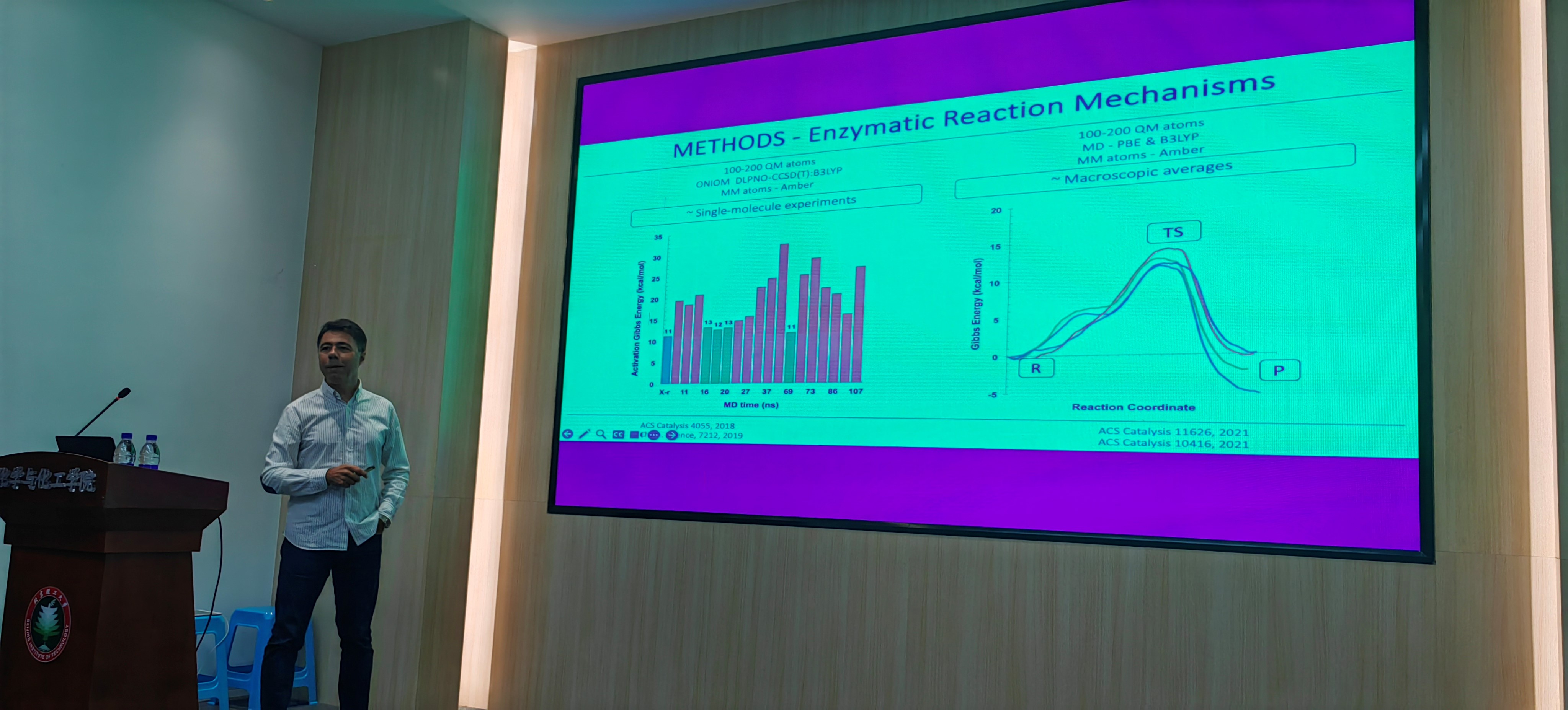 Pedro Manuel Azevedo Alexandrino Fernandes教授從酶催化與仿生催化劑的需求與設(shè)計談起,深入淺出的介紹了目前通過量子力學/分子力學模擬酶催化過程與機制的理論與方法,隨后討論了他在蛇毒化學、脂肪酸合成、塑料生物降解等領(lǐng)域的研究工作。重點闡述了基于構(gòu)效關(guān)系的理解,如何去預測提升酶催化速率的突變方法,從而設(shè)計更高效的酶。最后從整體上討論計算機模擬帶給人們的關(guān)于酶催化的新理解。