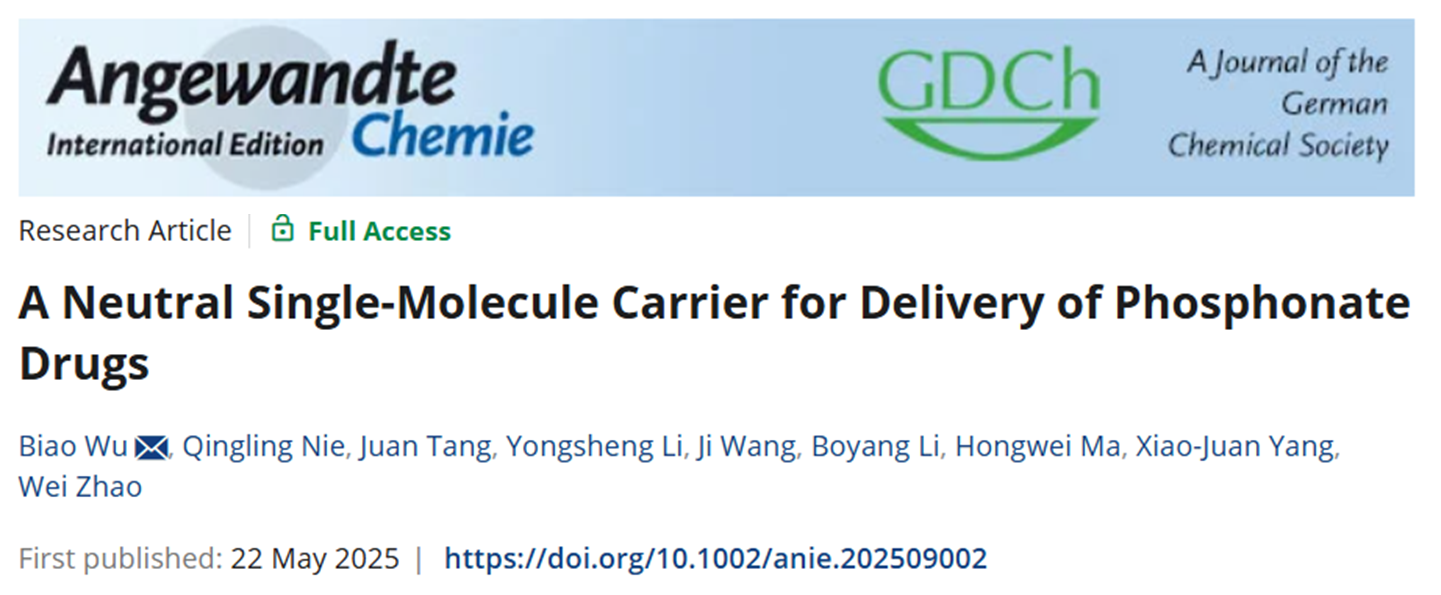 近日,北京理工大學(xué)化學(xué)與化工學(xué)院吳彪教授、唐娟特別研究員和趙偉特別研究員在國(guó)際知名化學(xué)期刊《Angewandte Chemie International Edition》上發(fā)表題目為“A Neutral Single-Molecule Carrier for Delivery of Phosphonate Drugs”的研究論文。該論文的第一作者為北京理工大學(xué)博士研究生聶清玲。此項(xiàng)研究得到了國(guó)家自然科學(xué)基金,北京市自然科學(xué)基金和北京理工大學(xué)青年教師學(xué)術(shù)啟動(dòng)計(jì)劃等項(xiàng)目的資助及北京理工大學(xué)分析測(cè)試中心的支持。
